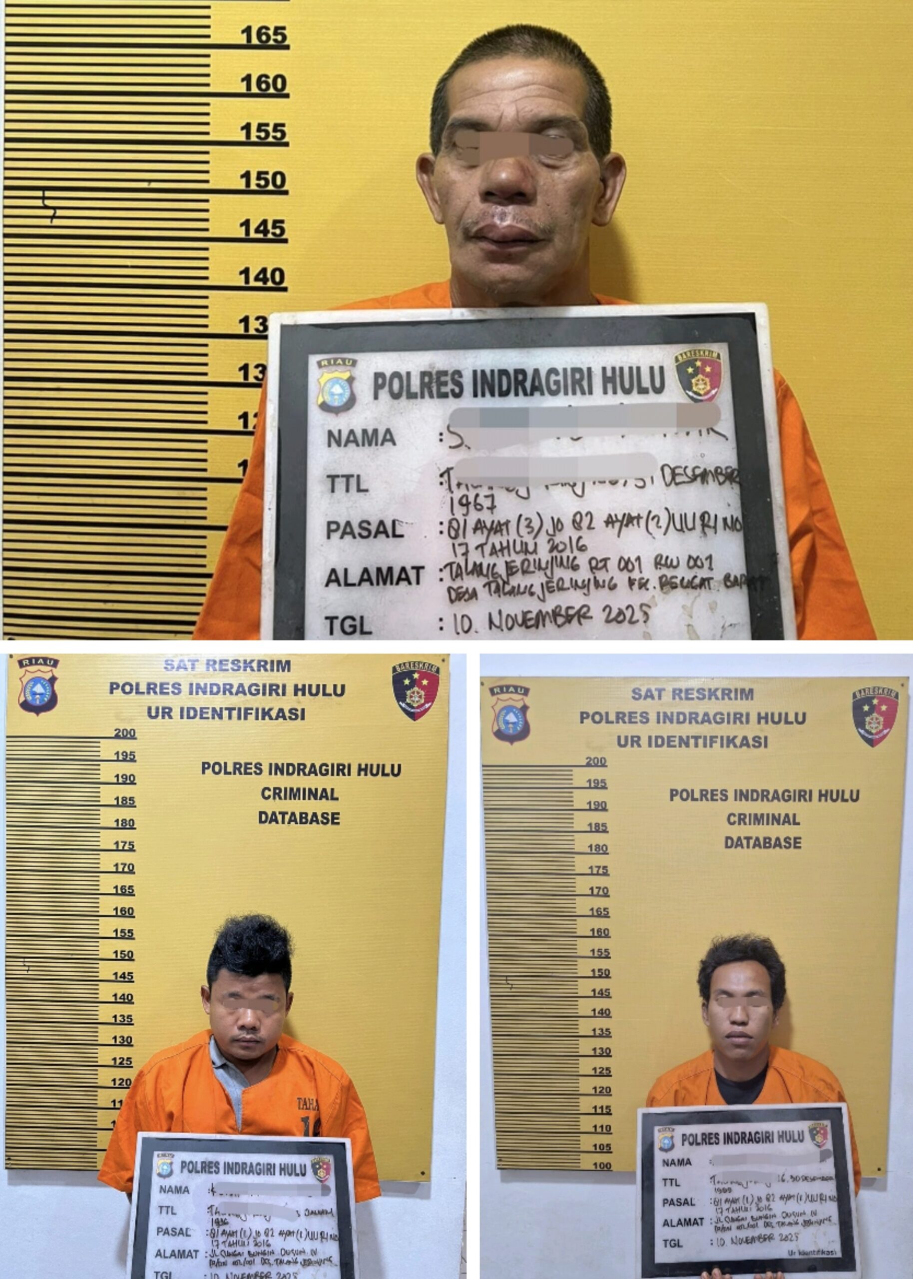 Kapolres Inhu AKBP Fahrian Saleh Siregar, S.I.K., M.Si melalui Kasi Humas Polres Inhu Aiptu Misran, SH menjelaskan bahwa pengungkapan kasus ini dilakukan oleh tim Satreskrim pada Senin (9/11/2025) malam hingga Selasa (10/11/2025) dini hari. Dari hasil penyelidikan, tiga orang terduga pelaku berhasil diamankan. Ketiganya masih memiliki hubungan keluarga dengan korban, salah satunya merupakan ayah tiri korban sendiri.