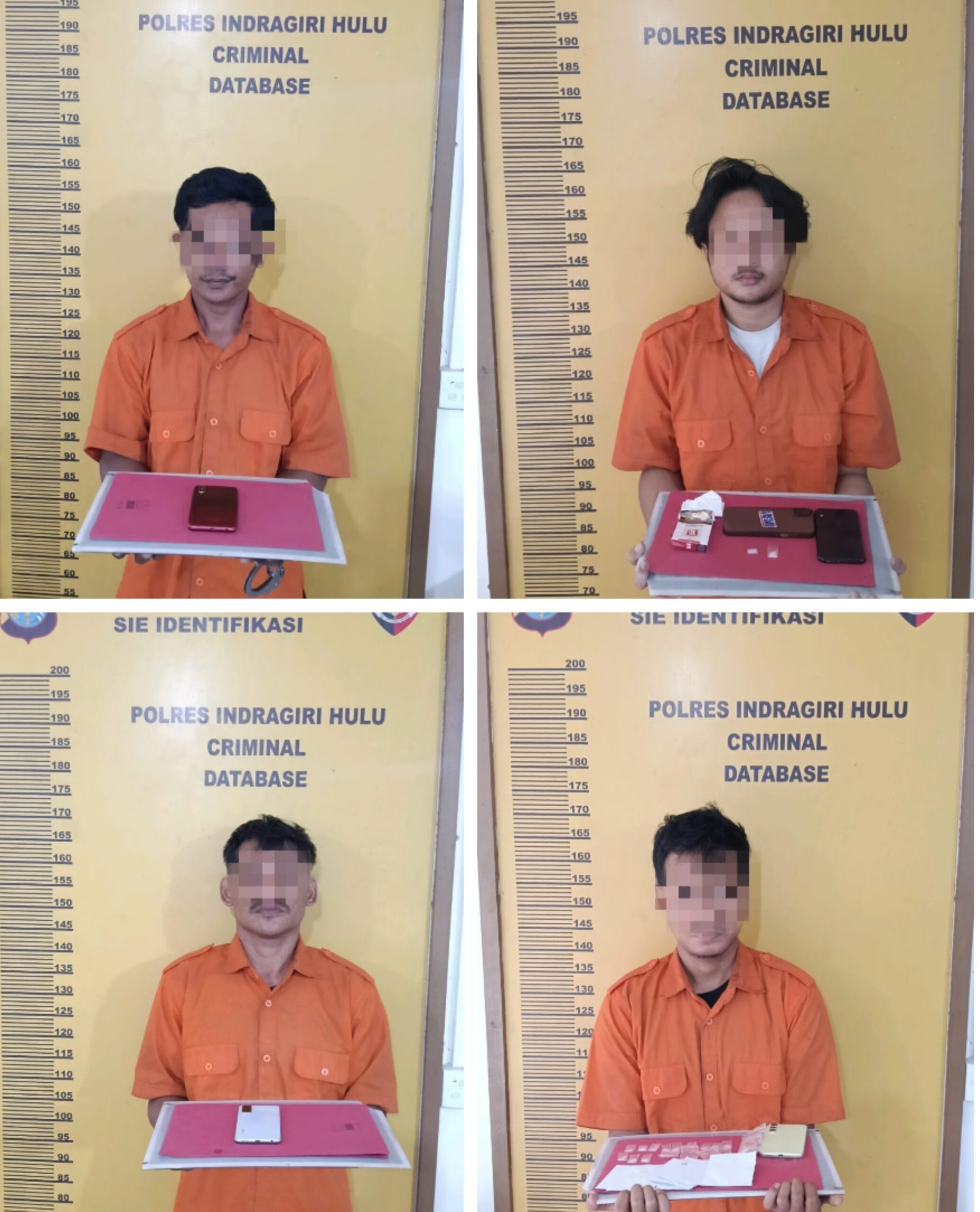 Keempat tersangka kini mendekam di sel tahanan Polres Inhu. Hasil tes urine mereka juga menunjukkan positif menggunakan narkotika. Atas perbuatannya, mereka dijerat Pasal 114 ayat (1) dan/atau Pasal 112 ayat (1) Undang-Undang Nomor 35 Tahun 2009 tentang Narkotika dengan ancaman hukuman belasan tahun penjara.