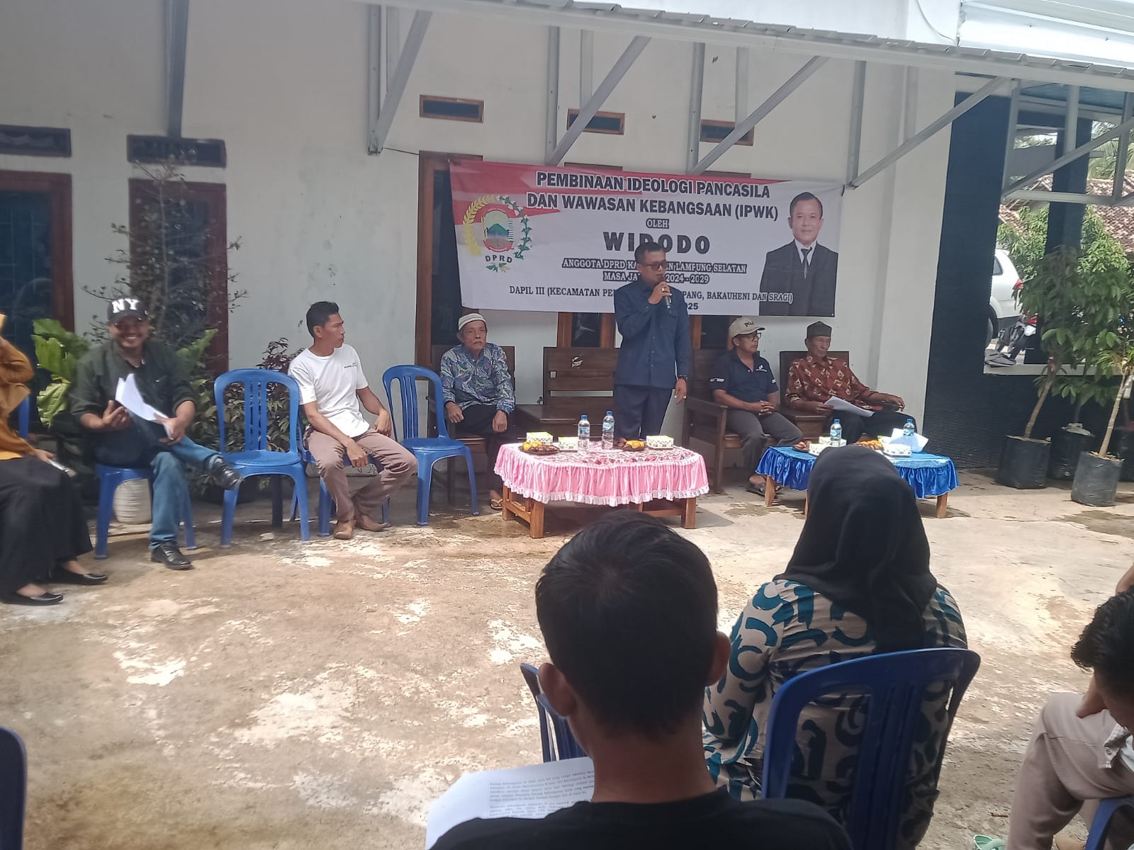 Lampung Selatan | Kuantan Xpress.id – Anggota Komisi II DPRD Kabupaten Lampung Selatan masa jabatan 2024 – 2029 dari Fraksi PAN, Widodo melaksanakan Sosialisasi Pembinaan Ideologi Pancasila dan Wawasan Kebangsaan (IPWK) yang pertama di daerah pemilihannya, yakni Dusun Gunung Botol Desa Penengahan, Kecamatan Penengahan, Kabupaten Lampung Selatan, sebagai bentuk kepeduliannya terhadap pembangunan karakter bangsa.
