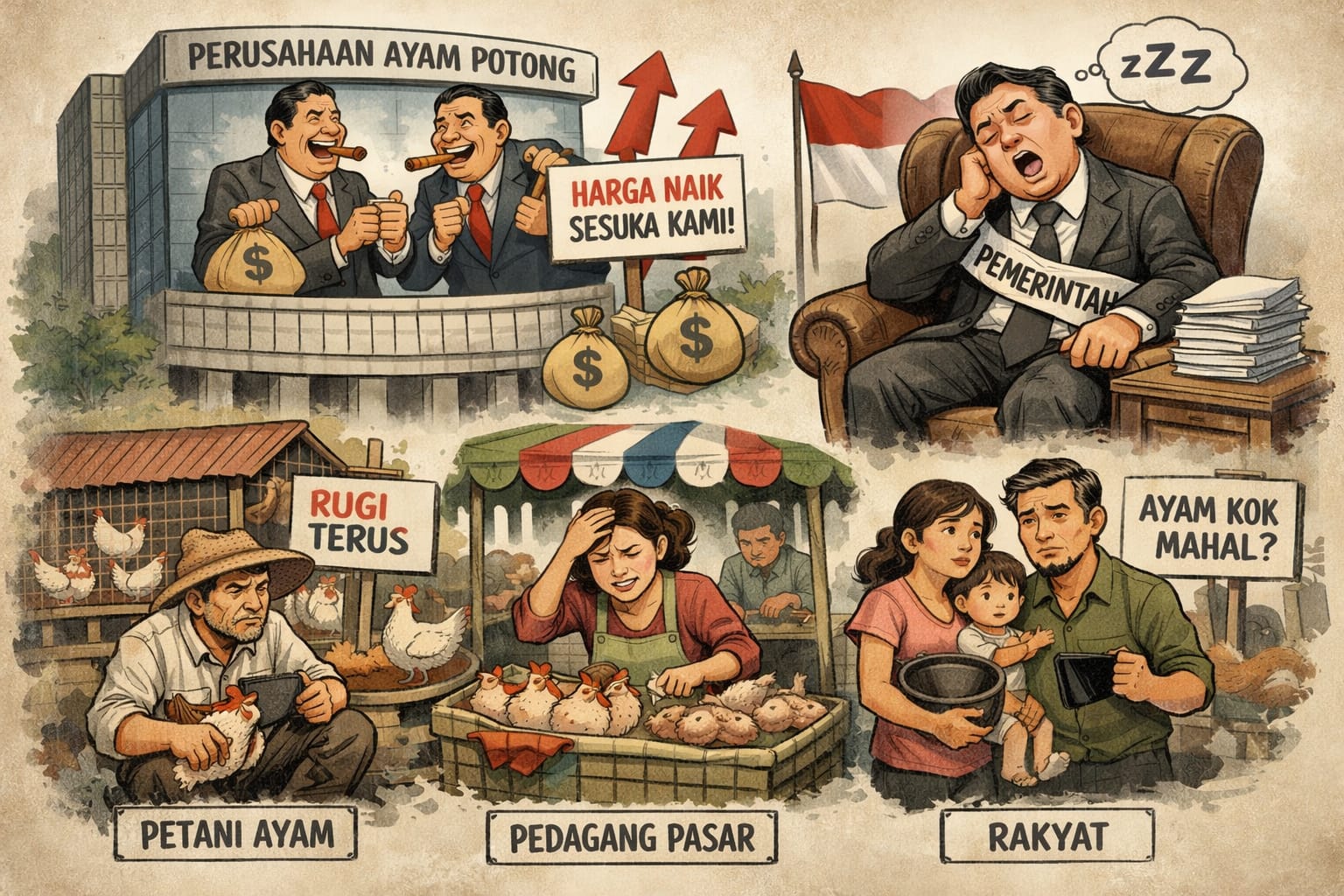Lonjakan harga ayam potong dinilai turut memicu inflasi bahan pangan di daerah, mengingat komoditas tersebut menjadi salah satu kebutuhan pokok masyarakat. Kenaikan beruntun sejak akhir 2025 hingga awal 2026 memunculkan dugaan adanya pengaturan pasokan di tingkat perusahaan peternakan besar yang menguasai pembibitan, pakan, hingga distribusi.