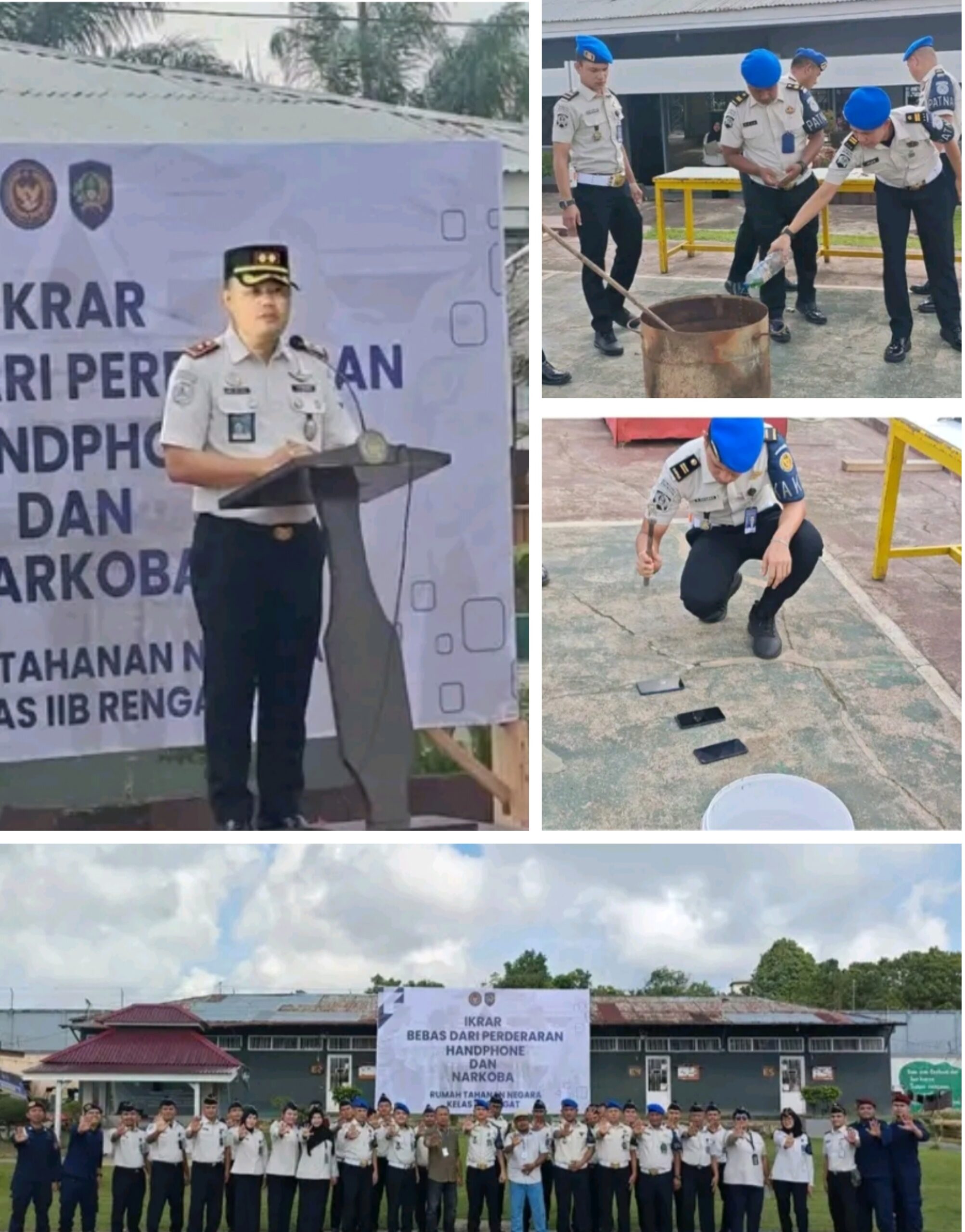Sebagai bentuk nyata komitmen tersebut, seluruh peserta apel melaksanakan pembacaan ikrar bersama yang berisi tekad untuk menciptakan lingkungan Rutan Rengat yang bersih dari peredaran handphone dan narkoba.