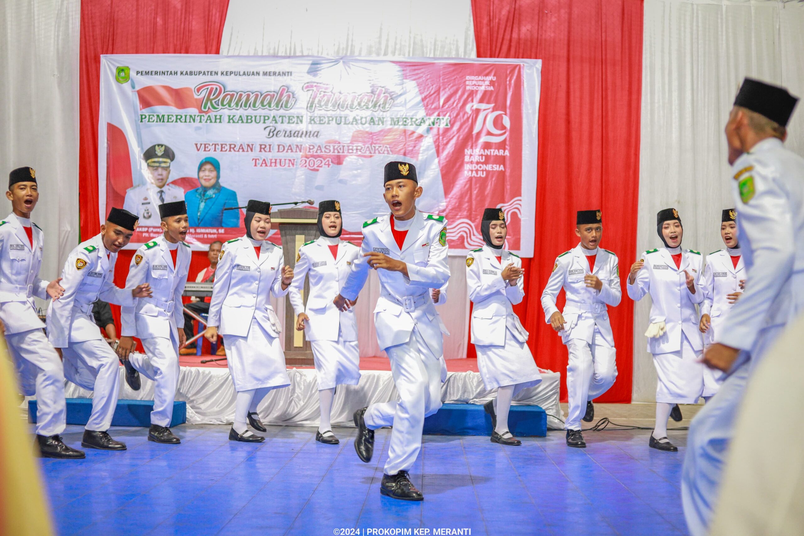 kuantanxpress.id|MERANTI – Pemerintah Kabupaten Kepulauan Meranti menggelar malam ramah tamah dalam rangka Hari Kaemerdekaan Republik Indonesia ke-79 bersama Veteran dan Paskibraka, di Afifa Sport Center Selatpanjang, Sabtu (17/8/2024) malam.