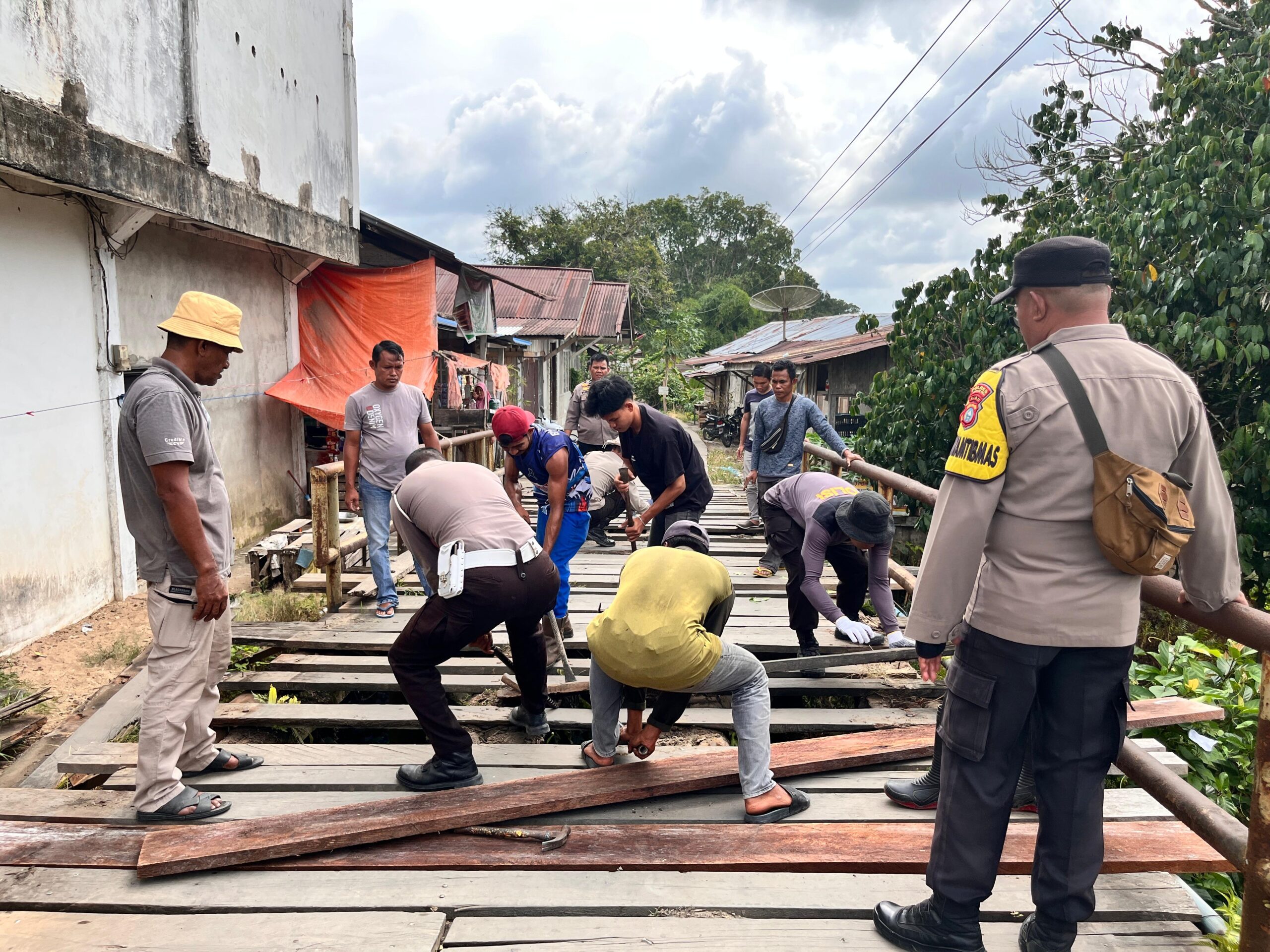 Dalam kegiatan di Peranap, personel Polsek bersama warga mengganti papan lantai dan lagor jembatan yang telah lapuk dan patah. Hingga hari keempat, renovasi berhasil mengganti empat lagor jembatan dan 31 papan lantai, dengan pekerjaan dijadwalkan berlanjut pada Senin (2/2/2026).