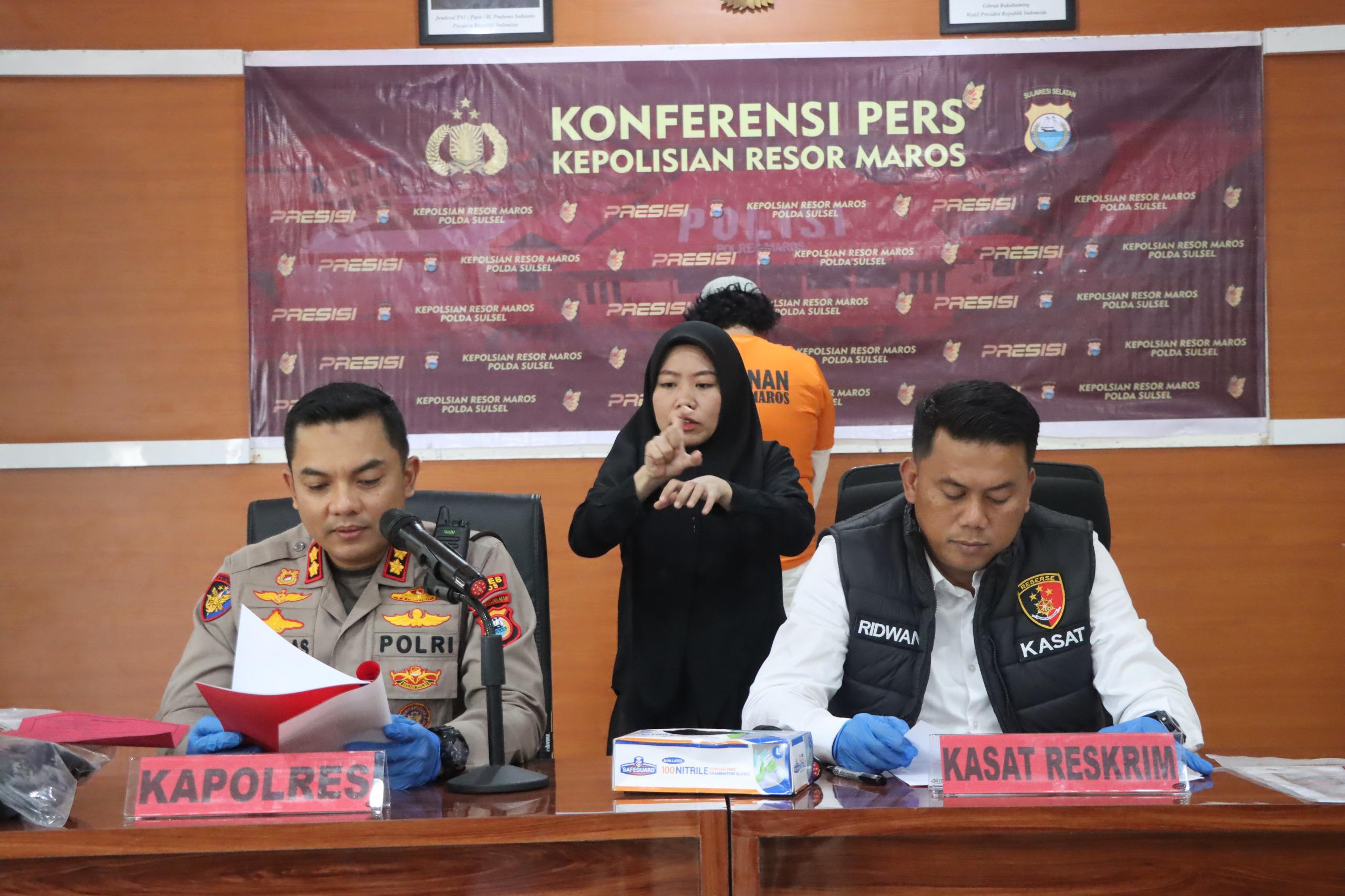 Kapolres Maros, AKBP Douglas Mahendrajaya, S.H., S.I.K., M.I.K., M.Tr.Opsla, menegaskan dalam konferensi pers di Aula Promoter Polres Maros