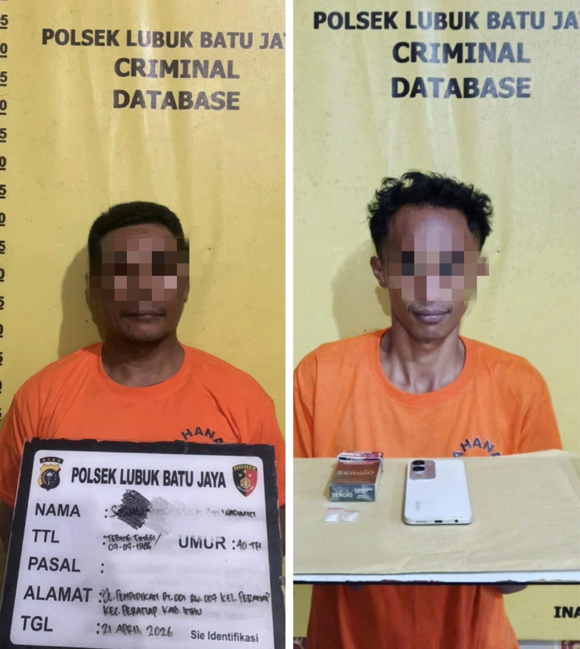 Inhu|KX- Peredaran narkotika di wilayah Kabupaten Indragiri Hulu kembali diguncang oleh aksi cepat aparat kepolisian. Dalam satu rangkaian pengungkapan yang berlangsung pada Selasa (21/4/2026), Polsek Lubuk Batu Jaya (LBJ) berhasil membongkar jaringan peredaran sabu dan meringkus dua orang tersangka di lokasi berbeda.
