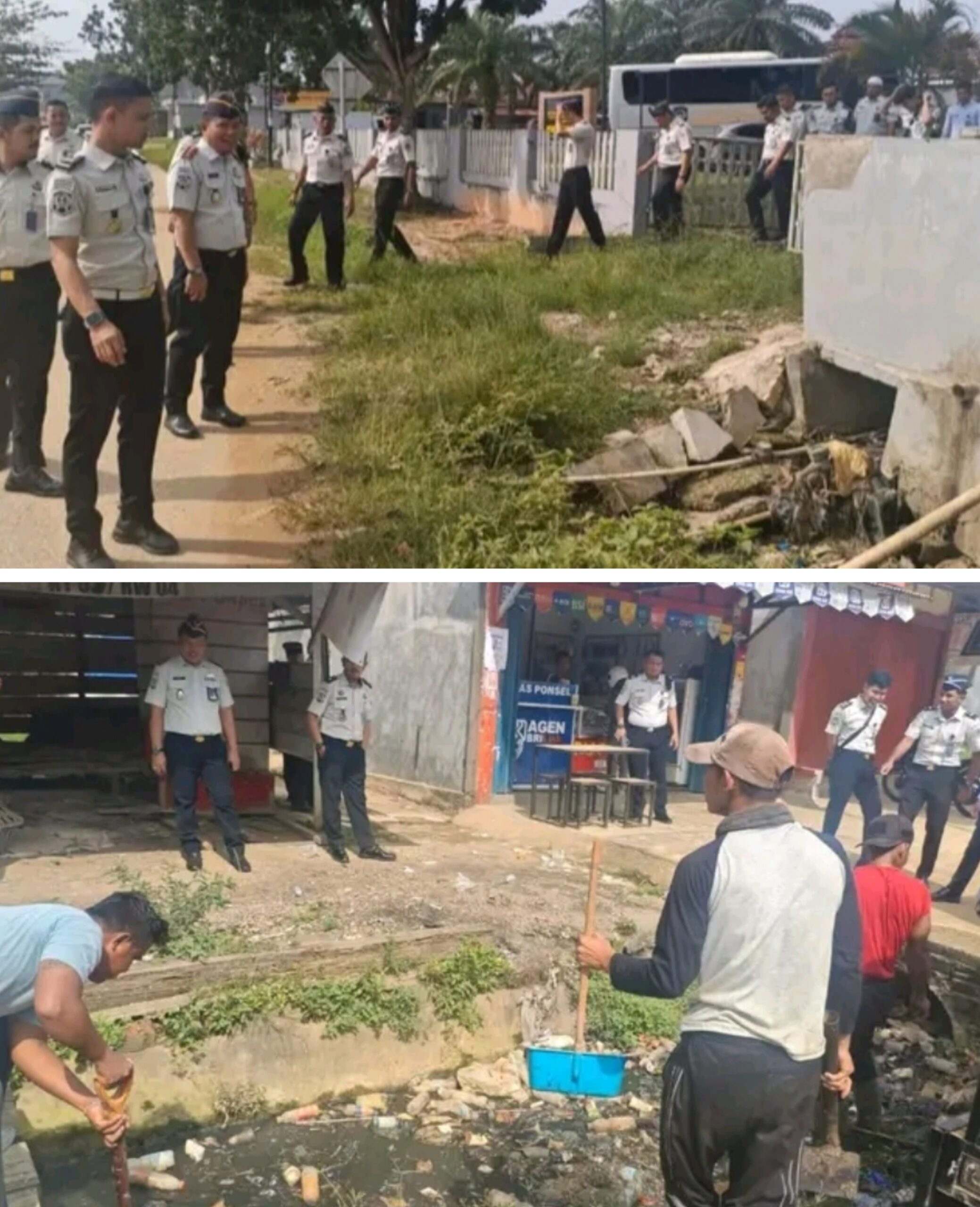 Rengat|KX- Rumah Tahanan Negara Kelas IIB Rengat melaksanakan gotong royong pembersihan di sekitar lingkungan kantor, Senin (23/2/2026).