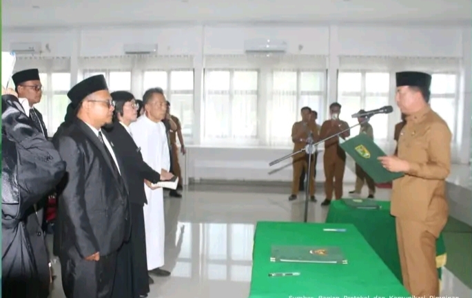 Inhu|KX- Sekretaris Daerah Kabupaten Indragiri Hulu (Inhu), Zulfahmi Adrian, mewakili Bupati, melantik sejumlah Kepala Unit Pelaksana Teknis (UPT) Puskesmas di lingkungan Dinas Kesehatan Inhu. Prosesi pelantikan berlangsung di Aula Dinas Kesehatan Inhu, Senin (20/4/2026), dengan suasana khidmat.