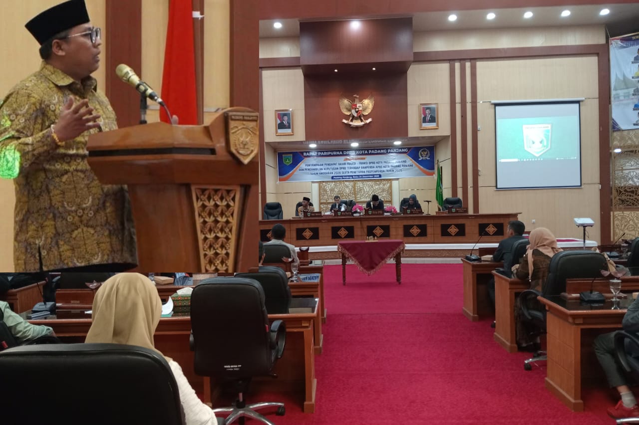 Padang Panjang (Sumbar), kuantan xpress – Wali Kota Padang Panjang, Hendri Arnis, menyinggung kinerja Dewan Kerajinan Nasional Daerah (Dekranasda) saat Rapat Paripurna DPRD Kota Padang Panjang dalam agenda pengesahan Anggaran Pendapatan dan Belanja Daerah (APBD) Tahun Anggaran 2026. Sidang berlangsung di ruang rapat DPRD Kota Padang Panjang, Rabu malam (24/12/2025).