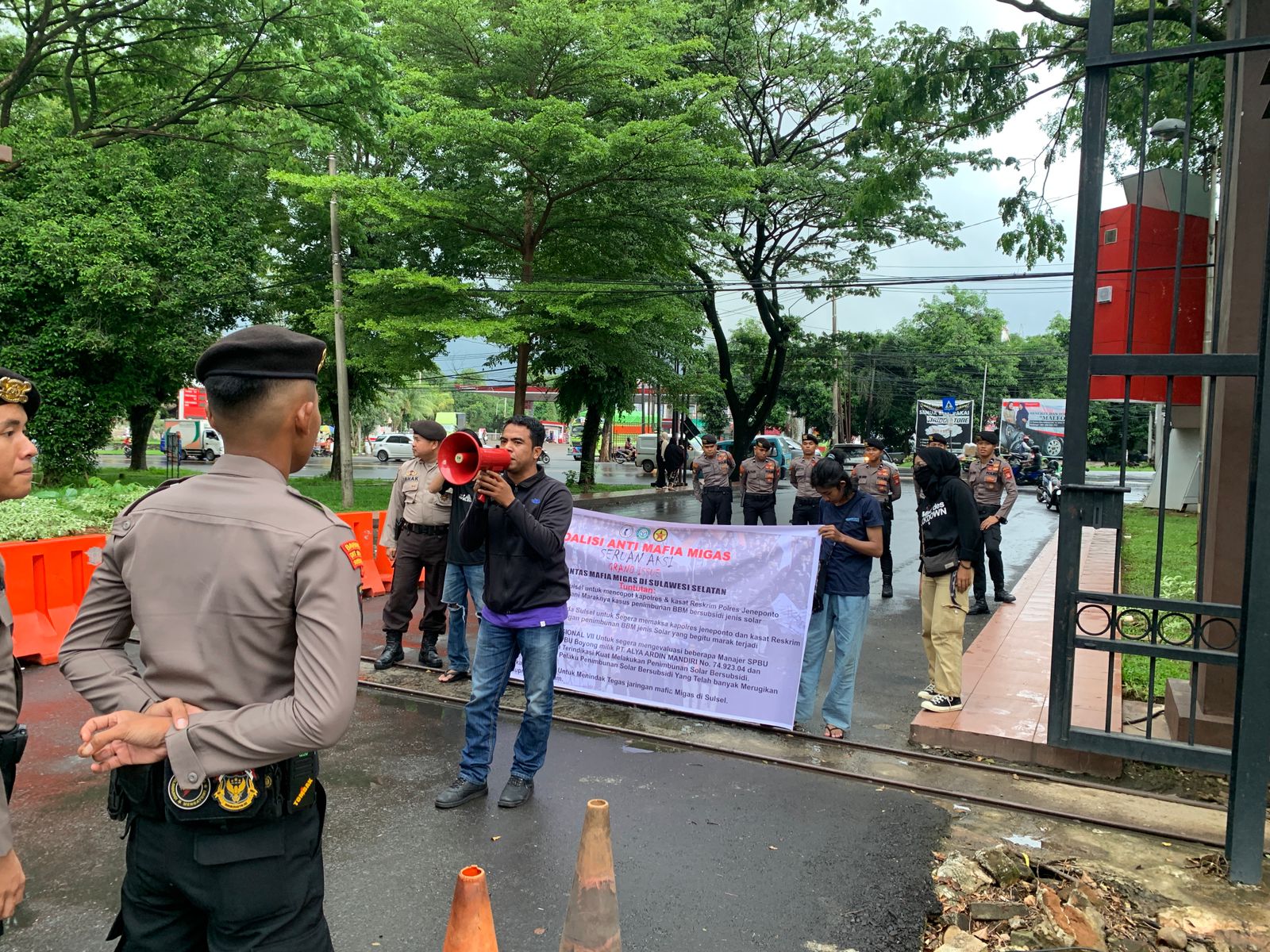 Makassar(Sulsel), Kuantanxpress.id- Koalisi Anti Mafia Migas melakukan aksi demonstrasi di depan Kantor mapolda sulsel, Selasa (17/12/2024).