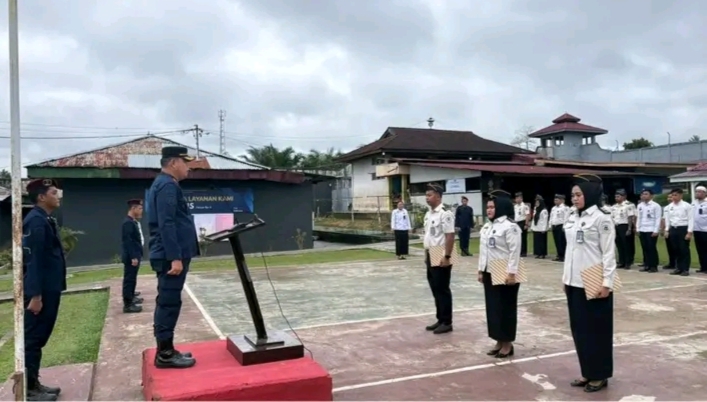 Rengat|KX– Rabu (18 Februari 2026), Rumah Tahanan Negara Kelas IIB Rengat sematkan tanda kenaikan pangkat bagi tiga petugas. Kegiatan tersebut dilaksanakan dalam kegiatan apel pagi yang dihadiri seluruh jajaran petugas sebagai bentuk penghargaan atas capaian kinerja petugas.